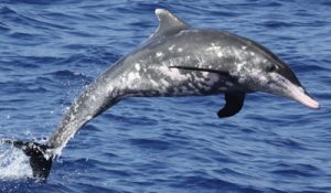 Just imagine a bottlenose dolphin with small white spots scattered especially in its middle and lower parts of the body, that’s your spotted dolphin. But it can be quite tricky to identify a juvenile spotted dolphin since the white spots are only evident during adulthood.